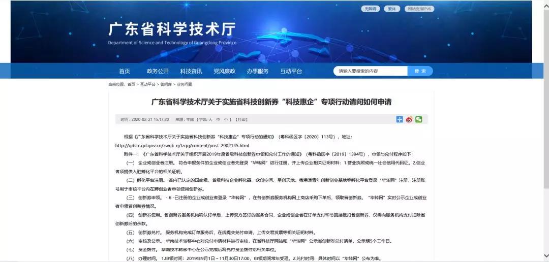 2月21日,廣東省科學(xué)技術(shù)廳發(fā)布了《廣東省科學(xué)技術(shù)廳關(guān)于實(shí)施省科技創(chuàng)新券“科技惠企”專項(xiàng)行動(dòng)請(qǐng)問如何申請(qǐng)》,為科技型中小企業(yè)申領(lǐng)創(chuàng)新券指明道路。